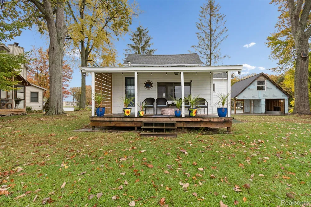 Enjoy the best of lakefront living in this remodeled, charming, 2-bedroom bungalow with water views from both the front and back — offering a stunning sunrise and sunset every day. Nestled between Devil’s Basin and Strawberry Lake, you can sit on the covered lanai and watch the boats go by on Devils Basin or relax with breathtaking sunset views over Strawberry Lake. The large concrete firepit is perfect for those bonfires with friends and family while looking out at the water. This home features a private dock, a brand-new 22'x28' shed for your lake toys and an attic with extra storage space. Inside, you’ll love the spacious, newly renovated kitchen with all new stainless steel appliances and new flooring throughout the home. New all-in-one washer and dryer is a perfect space saver and the painting inside and out has been done for you. Those big ticket items such as furnace, tankless hot water heater, well, water lines and drainage lines are all brand new. . Parking is in a shared community area and you walk along the easement along the Devil Basins side to access the home. Whether you’re looking for the perfect cottage getaway or ready to do a little DIY-ing to make it your year-round home, this lakefront home delivers comfort, charm and endless waterfront enjoyment