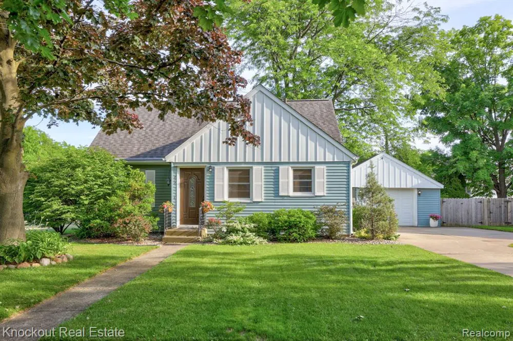 The epitome of "Gemütlichkeit", or the feeling of coziness, is captured in this updated 1,350 sq ft Bavarian blue bungalow just off Main Street and a few blocks from charming downtown Frankenmuth! Be greeted with a "chirp" in the updated kitchen/dining room with blonde oak LVP flooring, rattan chandelier and galley quartz kitchen, with shaker cabinets, wainscot backsplash, and stainless appliances (2020). The renovated full bath is adorned with porcelain mosaic tile floor, porcelain sink vanity, and newer shower insert, while the two main level bedrooms and living room have original hardwood floors. Creamy white "Pam's Lace" wall color flows into the living room, which is flooded with natural light through the large vinyl windows, and coved ceilings. Upstairs, the landing makes the perfect flex space for an office, playroom, or walk-in closet adjoining the third bedroom. Additional storage can be found in attic cubby space, and painted full basement. The landscaped, fenced backyard is almost a quarter acre lot, complete with a covered patio space off the garage and stone patio, perfect for al fresco dining and entertaining! Other updates include: mostly PEX plumbing, 200 amp electrical panel, and mostly updated electrical. Don't just be a visitor to the warmth, friendliness, and good cheer (Gemütlichkeit) waiting for you on Vates!