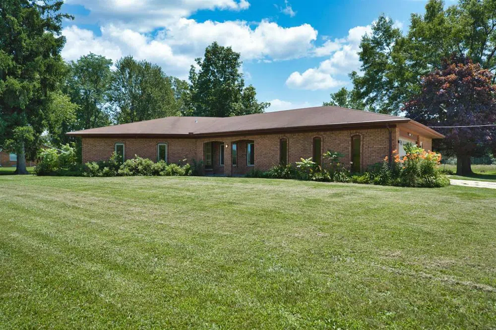 Highest and best offer due by 5pm 7/29. Incredible opportunity for serene rural living, conveniently located just a short drive to shopping and dining amenities. This 8.5-acre property, lovingly cared for by its original owner, offers the perfect blend of tranquility and accessibility. The 3-bedroom, 2-bathroom brick ranch features an inviting floorplan with kitchen and dining area that seamlessly flows into the cozy living room. Enjoy meals on the poured patio just outside the sliding door off the dining space. A charming den/library at the front of the house provides a quiet retreat, while the main floor laundry and three bedrooms situated at the back of the home offer convenience and privacy. The spacious full basement provides bonus storage, utility, or entertainment space, perfect for all your needs. Additionally, the property boasts a well-equipped pole barn 22'x32' with electricity and wood burning stove, ideal for outdoor hobbies and extra storage. The attached garage, featuring a new slab, offers parking for two vehicles and additional storage space. For added peace of mind, a whole-house Generac generator has been installed, ensuring you're not without power. Enjoy the peaceful and serene surroundings of this beautiful property, ready for your personal updating and touches. Don't miss this unique opportunity to embrace rural living with modern comforts and nearby amenities. Property sold as-is. Buyer to verify all information, room sizes and square footage. No sign on property.
