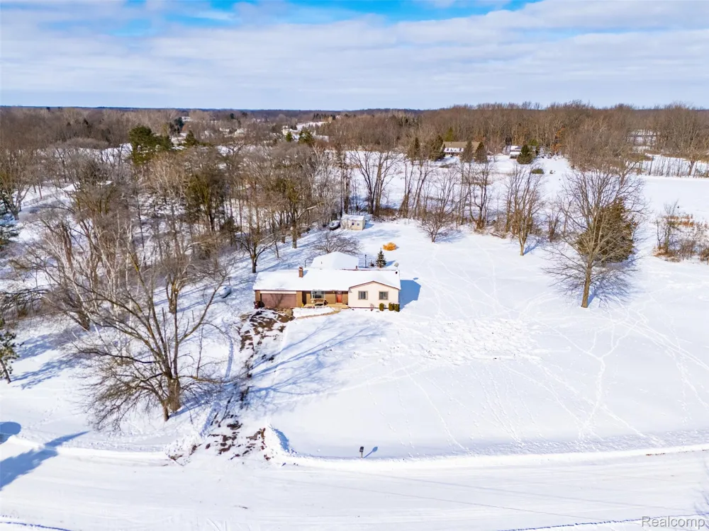 Looking for an adorable brick Ranch in Livingston county on almost 3 acres for under $300,000? You just found it! This home has only ever had one owner since it was built and offers privacy and scenic views! Lovingly maintained with recent updates including: New Carpet and Paint throughout (2026,) Furnace (2018,) Well Pressure Tank (2018,) Water Softener (2019.) So many charming features, from the moment you walk in and notice the stately brick gas fireplace and picture window, pouring light into the living room. The Dining Room is large enough to accommodate your favorite table and guests. It also offers sliding glass door access to the fantastic, huge covered back deck (future 3 seasons room?) Enjoy views of your spacious yard, the wildlife that stops by as well as the charming shed, which could make the perfect storage space, hobby room or playhouse. The kitchen has original hardwoods and is open concept to the dining area, perfect for entertaining. This home also boasts a first floor laundry room, accessible from garage entrance into the home, with a beautiful utility sink. Half bathroom conveniently located on this side of the home. Offering so much storage, the hallway closets lead to the full/primary bathroom, with accessibility features, huge shower and double vanity. It has direct access to the the bright and airy primary bedroom with two other bedrooms nearby. This home is truly turn key and waiting for its new owner to make it their own. Private road, acreage and wooded views, but still close enough to get to "the Best Main Street in America" as named by USA Today. This is truly an unbeatable location in Howell Township. Basement had a few cracks repaired in 2025 with transferrable warranty to the new owner! Included with purchase is also a portable AC unit.